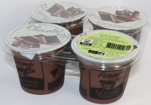 Descriptif : Crème dessert au lait de vache écrémé fermier bio au chocolat bio – sans œuf
